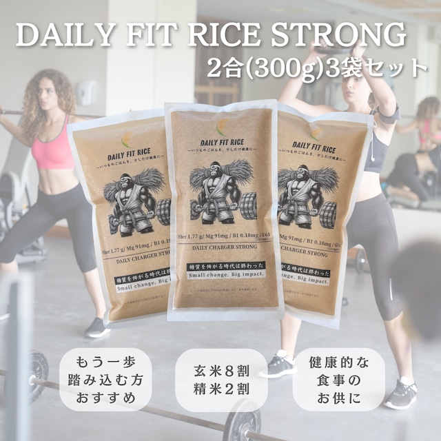 【主食で体を変える。玄米が主役の“パフォーマンス米”】 DAILY FIT RICE STRONG は、 「しっかりと玄米の栄養を摂りたい」という方向けの 玄米8:白米2 の高比率ブレンド。 玄米の香ばしい風味、低GI、腹持ちの良さが特徴で、 ダイエット期やトレーニング期の主食として選ばれています。 【開発者の実体験から生まれた“目的のある主食”】 開発者は BALANCE を摂りながら 食事改善と運動で10kg減量し、ベストボディジャパンへ出場。 その経験から 「より目的意識の高い人向けのブレンドを作りたい」 という想いが STRONG を生みました。 ※成果には個人差があります。 ※本商品単体でダイエット効果を保証するものではありません。 【STRONGの特徴】 ■ 玄米比率が高く栄養価も高め ■ 腹持ちが良く、ダイエットや筋トレ中の方に最適 ■ 低GIで血糖値が上がりにくい 【栄養価(150gあたり)】 ・食物繊維 1.8g ・Mg 91mg ・B1 0.18mg ・GI 61 【炊き方】 白米モード+水少し多め。 しっかりした食感が好きな方はそのままでOK。 【内容量】 300g × 3袋(合計900g) 【価格】 送料込み2,100円(税込) ※沖縄・離島への配送は、別途送料のご購入をお願いいたします 【こんな方におすすめ】 ・玄米の栄養をしっかり摂りたい ・ダイエットや体づくりに取り組んでいる ・腹持ちのいい主食を探している ・目的のある食生活を送りたい