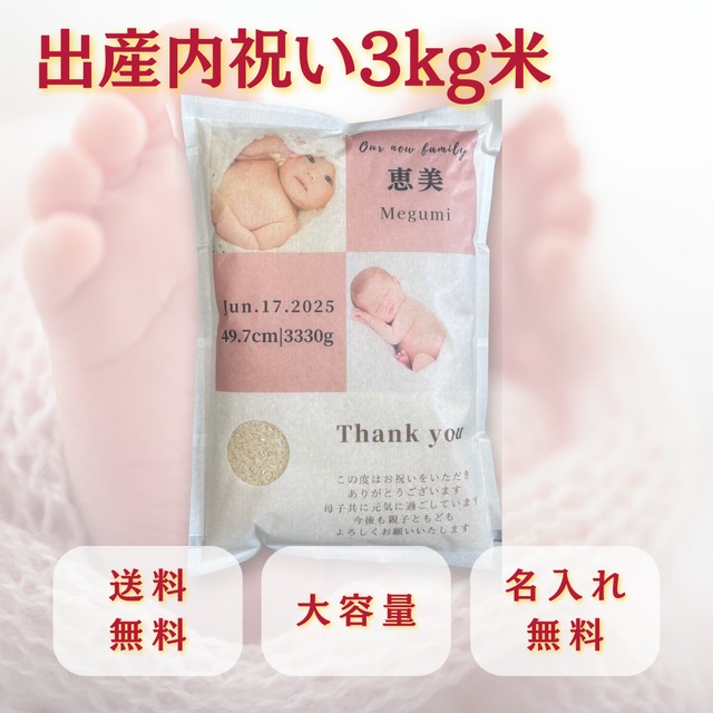 出産内祝い 3kg米 名入れ 写真入り 名前入り 赤ちゃん 結婚内祝い 高級 ギフト プレゼント 一等米 宮城県産ひとめぼれ 送料無料 人気 おすすめ メモリアル 贈り物