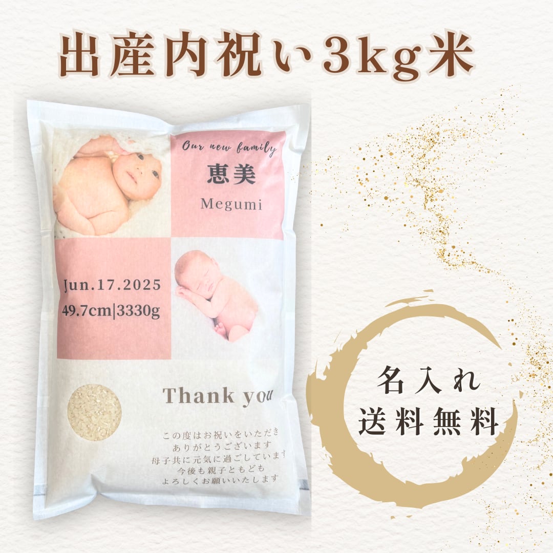 出産内祝い 3kg米 名入れ 写真入り 名前入り 赤ちゃん 結婚内祝い 高級 ギフト プレゼント 一等米 宮城県産ひとめぼれ 送料無料 人気 おすすめ メモリアル 贈り物 | 内祝い・お米ギフト専門店